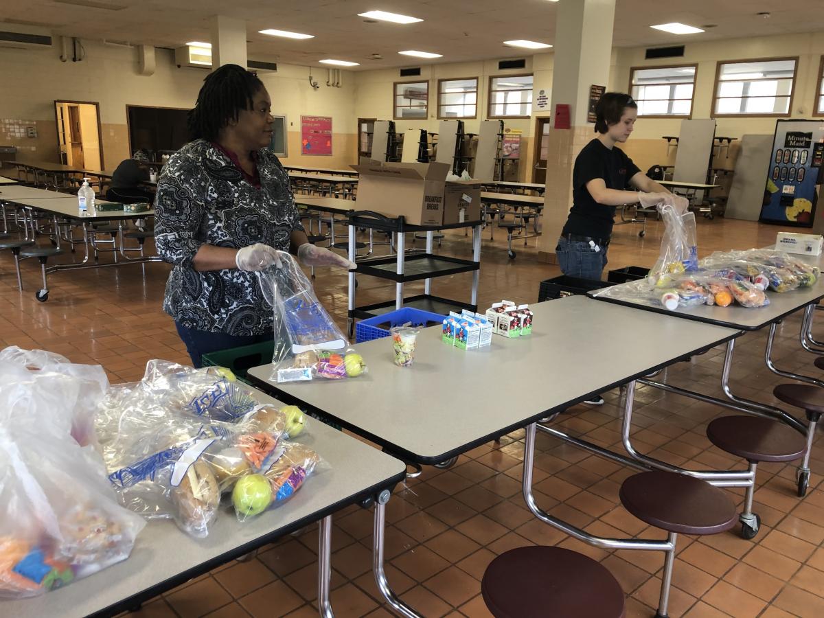 Bags full of sandwiches, milk, apples and snacks are handed out to students Monday through Friday at George Wythe High School, one of Richmond Public Schools' 10 school distribution sites. Photo by Hannah Eason