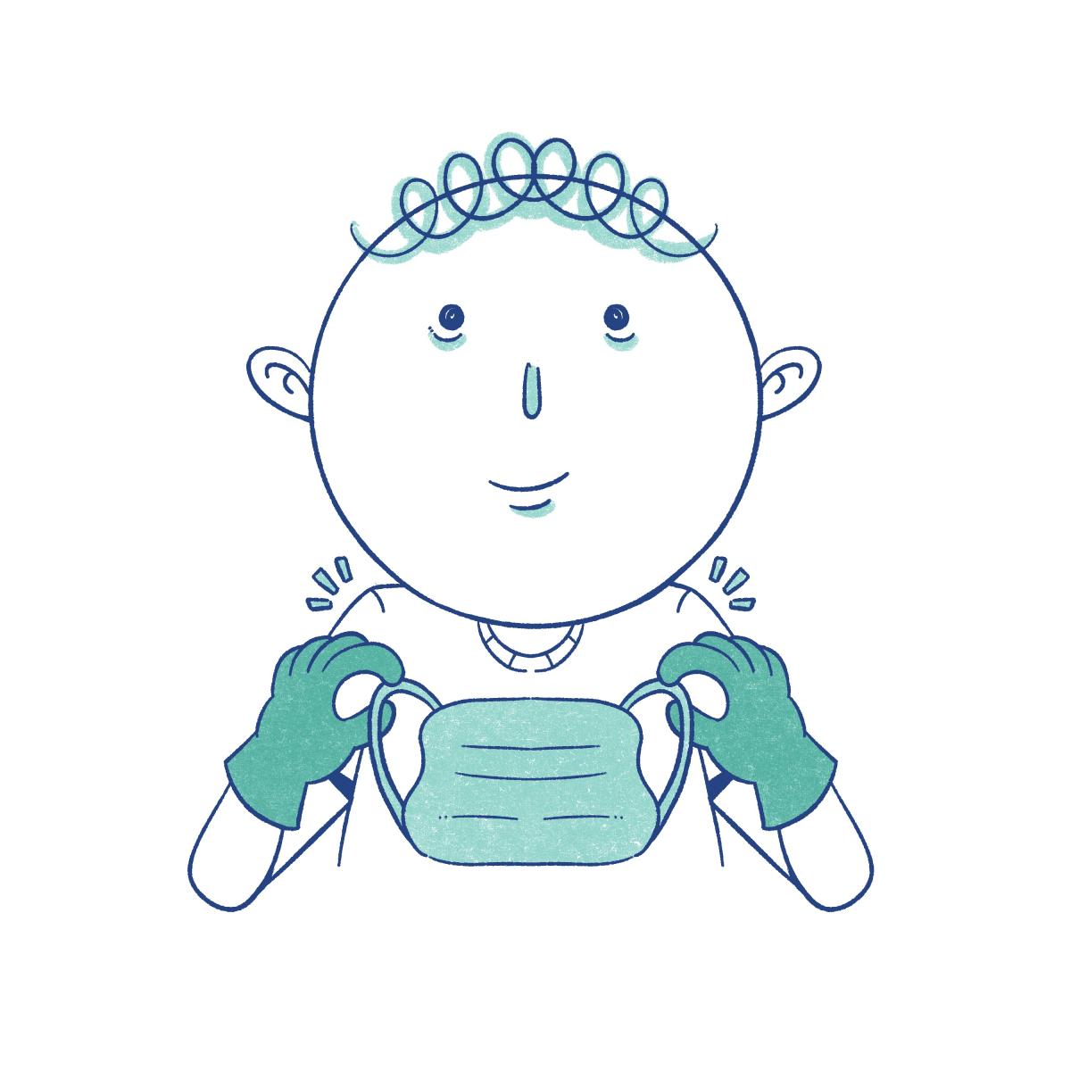 Take off the mask by the elastic or ties, not by pulling on the front of the mask, which may be contaminated. Illustration by Karly Andersen